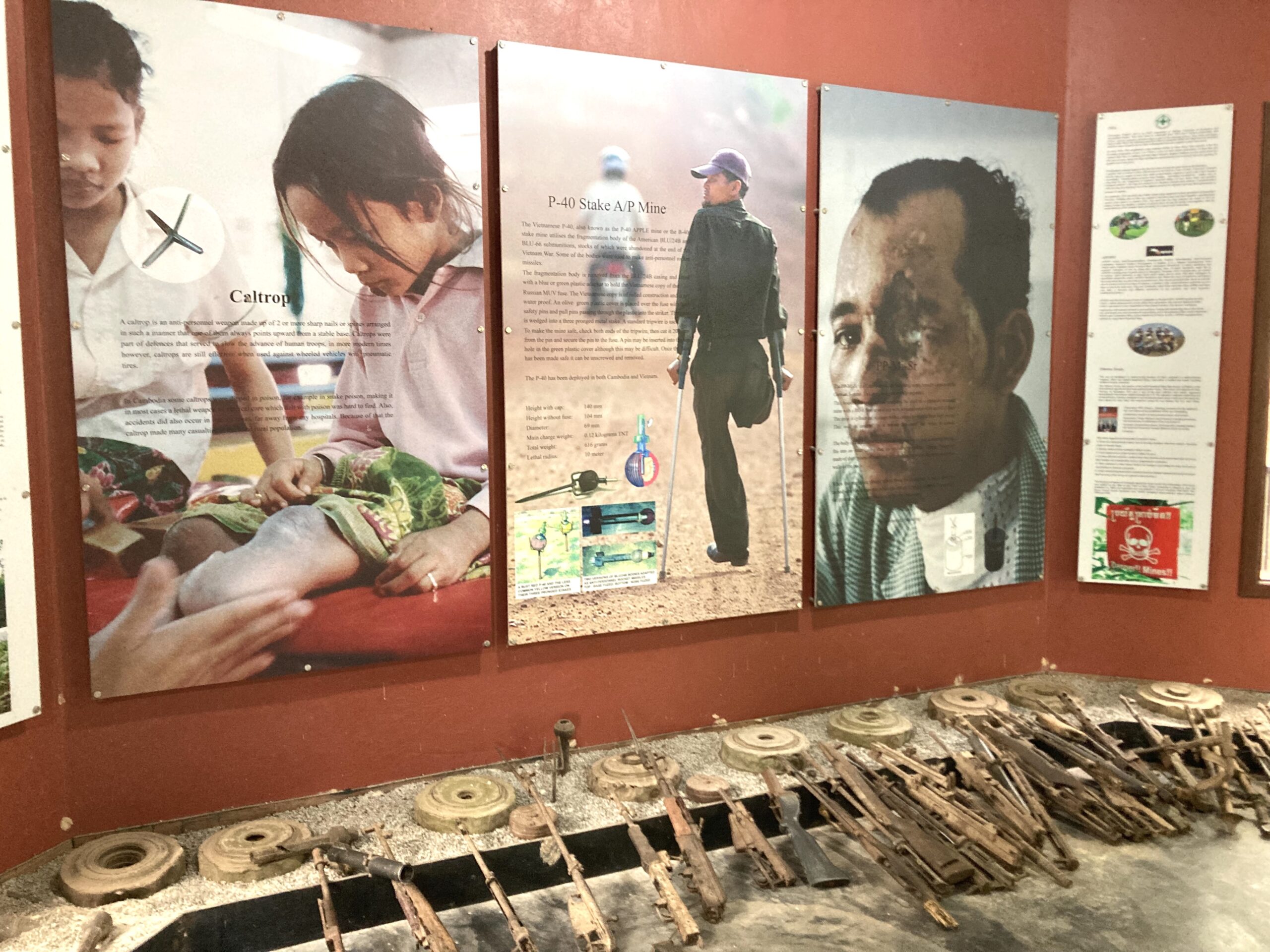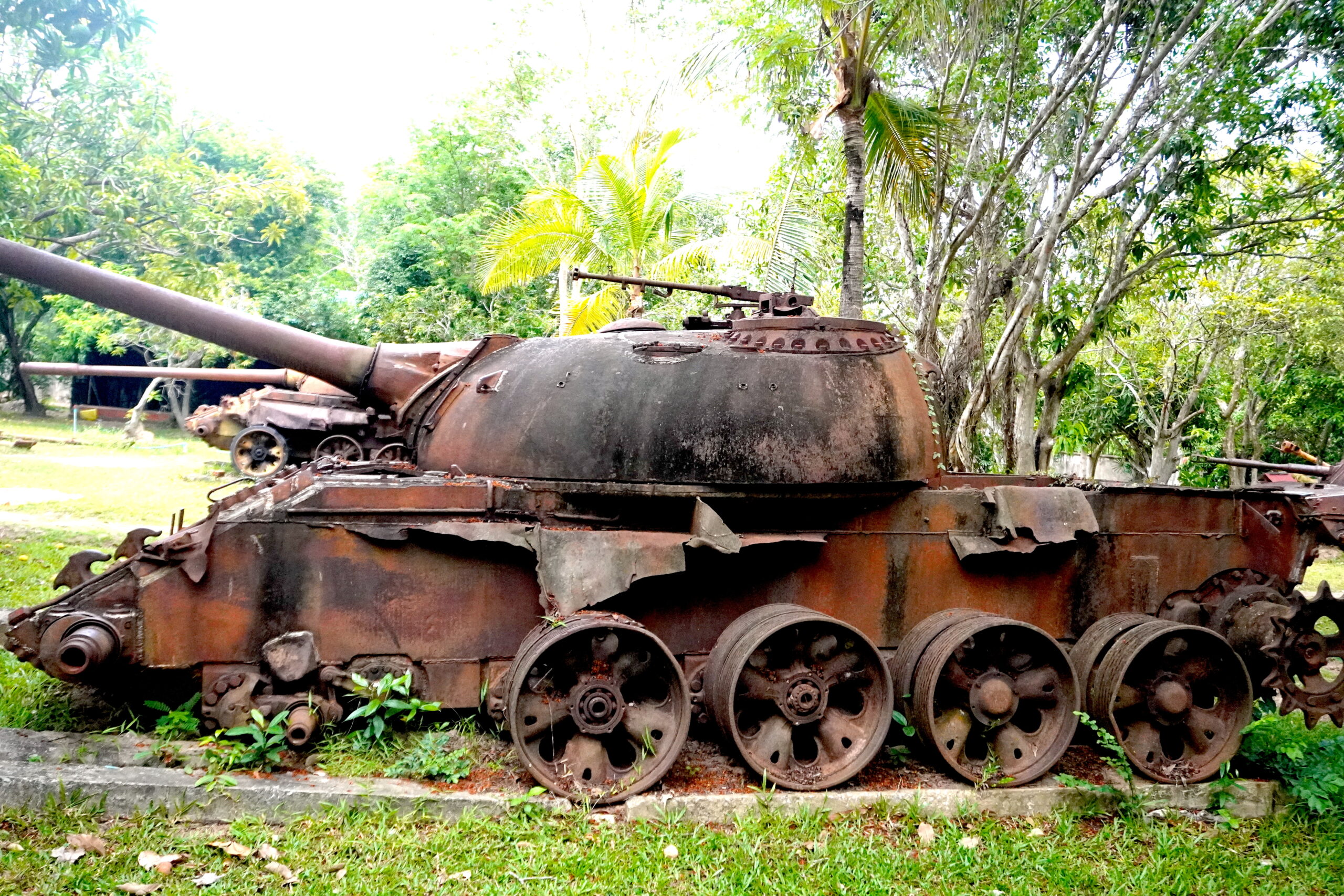 <カンボジア・シェムリアップの「戦争博物館」/室内展示は少なめで、内戦に使用された戦車・ヘリなどが野ざらしで展示されていて異様な空間に感じましたね…>