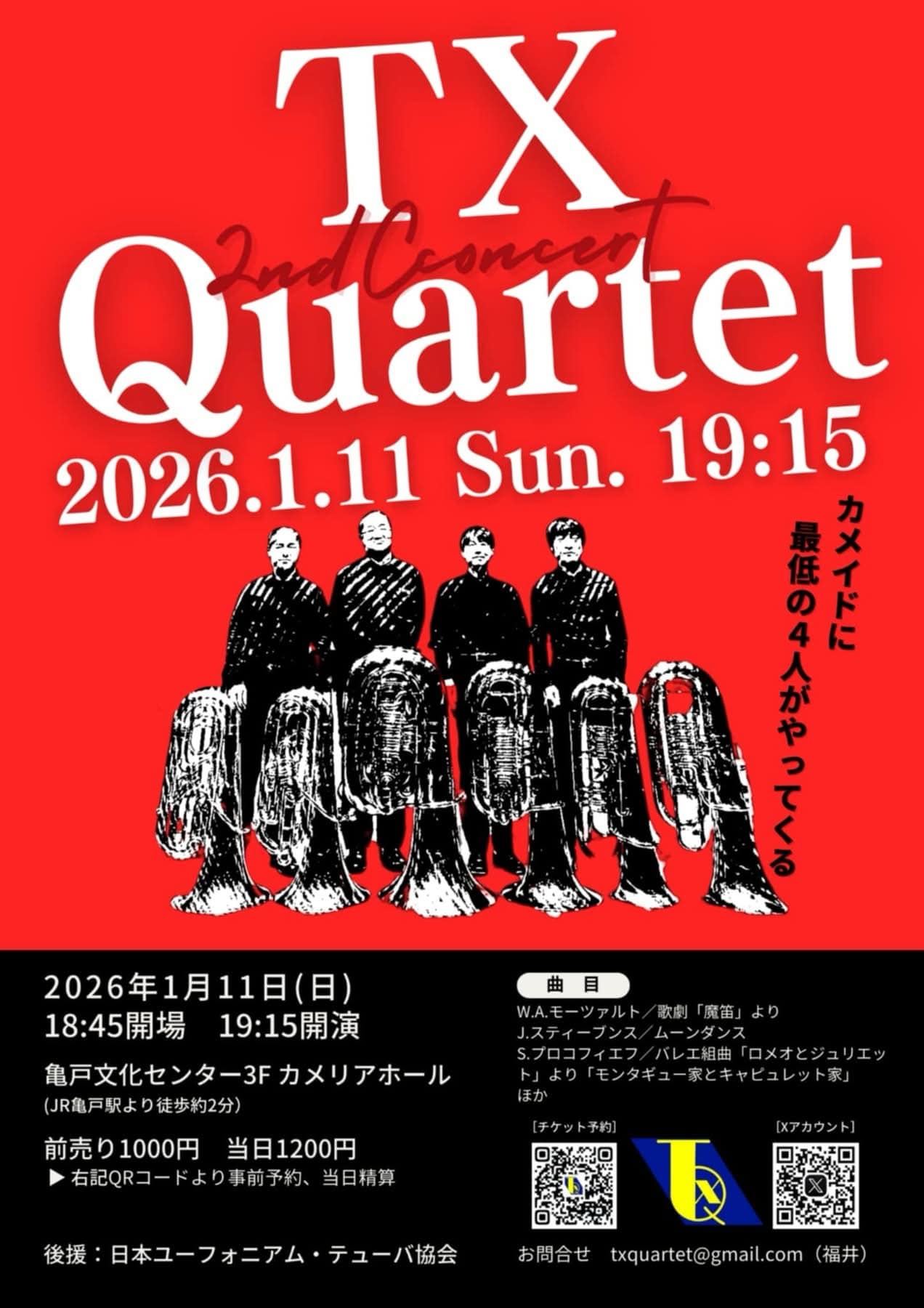 音楽のほうは完全に趣味で、ソロ活動の他、TX-Quartetというテューバ四重奏団を組んで東京で活動していますね。