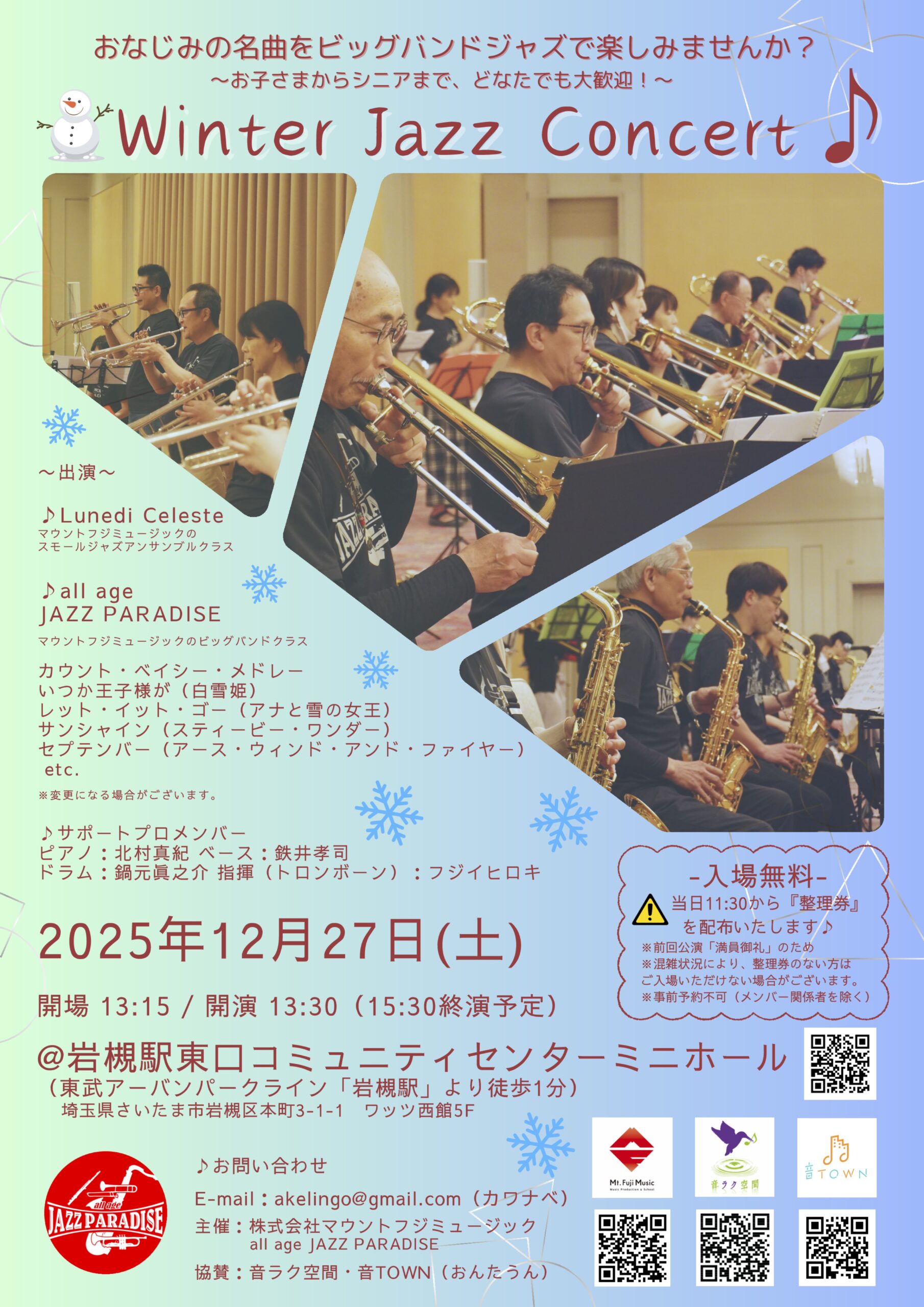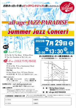 『all age JAZZ PARADISE』自主公演のお知らせ♪(2025.10.31現在)