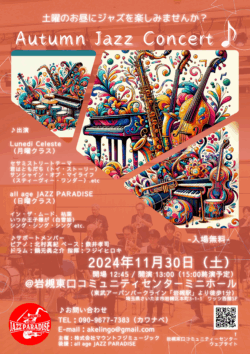 『all age JAZZ PARADISE』自主公演のお知らせ♪(2025.10.31現在)